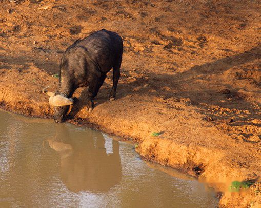 非洲水牛离不开水,每天需要饮用近50公升水,所以它们会在淡水源附近生活。