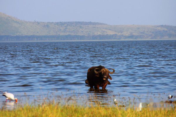 生活在纳库鲁湖边的水牛最幸福,有喝不完的淡水,还可以天天洗淡水澡。