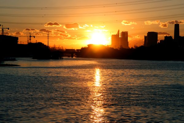 清澈的运河,映衬着美丽的蓝天,令人陶醉