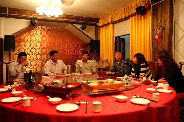 9月27日下午,一场大风,一场秋雨,将北京的天空洗刷得格外美丽。由经典发起的聚餐活动如约举行,地点就选在北京高碑店小河边古色古香的仿清楼里,饭店名叫舒文阁,有点文艺,老板一看就是爱好收藏字画及古典家具,三层小楼搞得十分雅致,桌椅板凳一律仿古家具。菜是地道的内蒙古风味,手把肉、烤羊排、奶茶,羊汤,非常美味。
