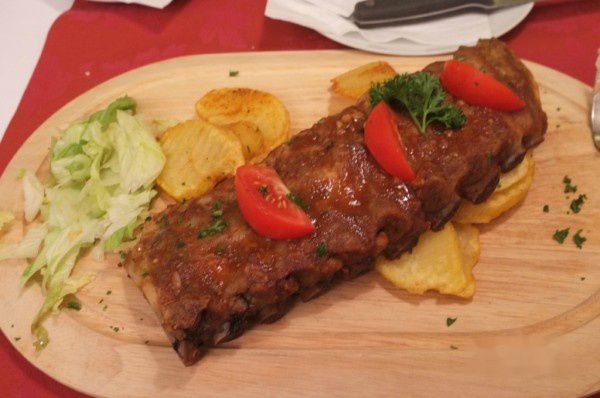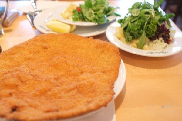所有的人几乎都吃的一样——炸猪排、洋芋泥和蔬菜色拉。普通饭量的人,炸猪排都吃不完,配菜也是浪费的多。还得点杯啤酒,要不干巴巴很难下咽,所以会吃得很撑,也就谈不上多美味了。