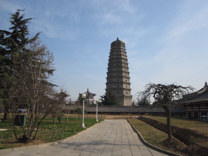 法门寺建寺是因为有个塔,叫阿育王塔,塔下的地宫供奉着阿育王的舍利,所以法门寺里面只有一座塔,整个寺庙围绕着塔新建。