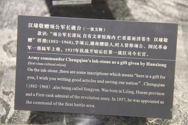 汉雄敬赠颂公(国军一级上将,第一战区司令长官程潜)军长砚台,为国家一级文物。