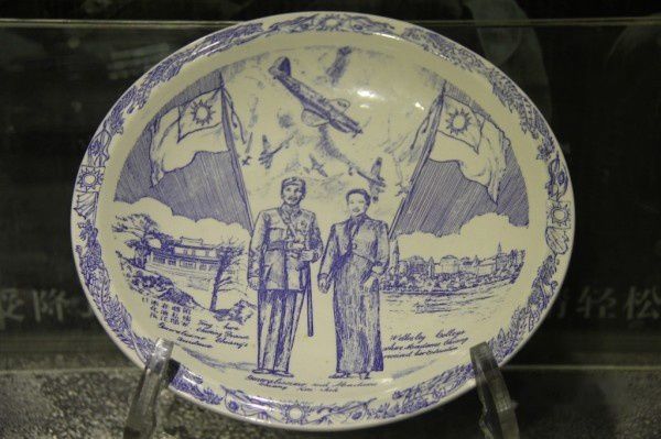 蒋介石宋美龄像青花瓷盘,美国制造。国家一级文物。