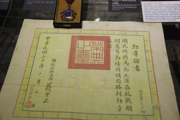 郑廷杰的抗战胜利勋章及证书,国家一级文物。