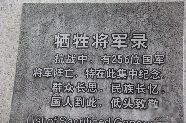 抗战中,共256名国军将军阵亡。群众常思,民族常忆。国人到此,低头致敬。