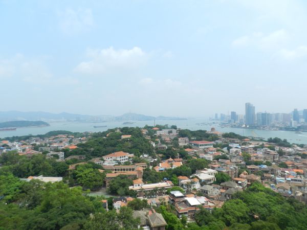 登上日光岩上极目远眺,一片巨葱翠之中露出白墙红顶小巧玲珑的楼房。蓝天白云大海之下,那么美,美得有点不真实。