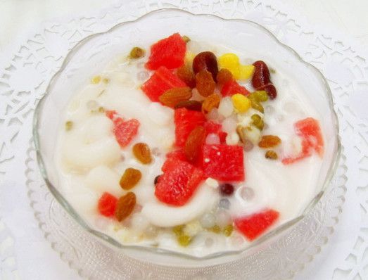 海南的清补凉摊多是设在路旁,摆上一席小桌子和小橱窗,旁边摆上一个保温冰桶,几套塑料的椅子和木桌。清补凉摊的小橱窗里放着一排塑料碗,碗里面分别装着糖水煮的芸豆、煮好的绿豆、通心粉、鹌鹑蛋、菠萝丁、西瓜丁、桂圆肉、红枣、薏米等等,很是诱人。加椰奶的是3元一碗,碗不算小,椰奶里有各种颜色的米果椰果等东西,口感很Q。