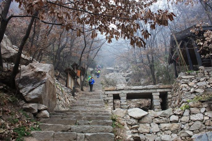 早上约9点钟,我们到达沣峪口G210公路边的净业寺前,整理好行装,便进入寺中,沿层层石阶,开始步步登高。