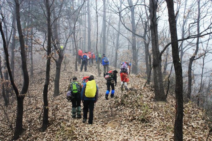 15日周六,天气预报说有雨夹雪,在“山水户外”的领队龚亮看来:“这样的天气,走一些相对安全且风景佳的地方比较适宜”,于是,我们一行17人跟随他选择了秦岭浅山的穿越:从青华山到皇峪寺,全程约40里。