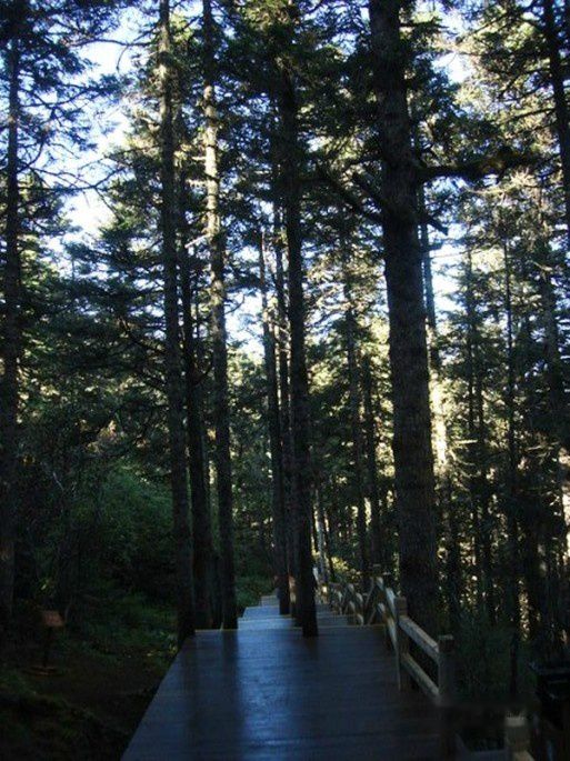 置身在海拔这么高的森林间,满目葱郁,空气芬芳潮湿,松涛与鸟语随野林山风不时传来,顿时有回归自然、超凡脱俗的感觉。