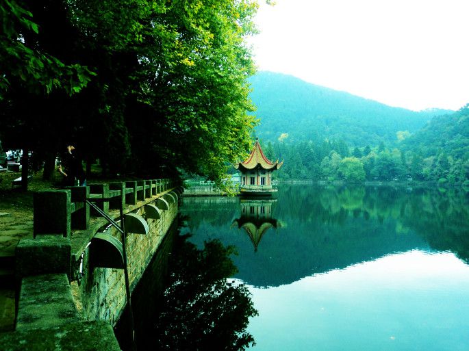 我们是晚上的车回北京,本来打算的是早上起床就下山,在九江市区逛逛,晚上就回了。打听一番发现九江没什么好逛的地方,最后决定再在庐山转半天,下午再下山。翻了翻地图,发现还有美庐、毛泽东故居、会址、芦林湖、黄龙潭、乌龙潭等一些地方还没去,就决定上午去把这些逛了。