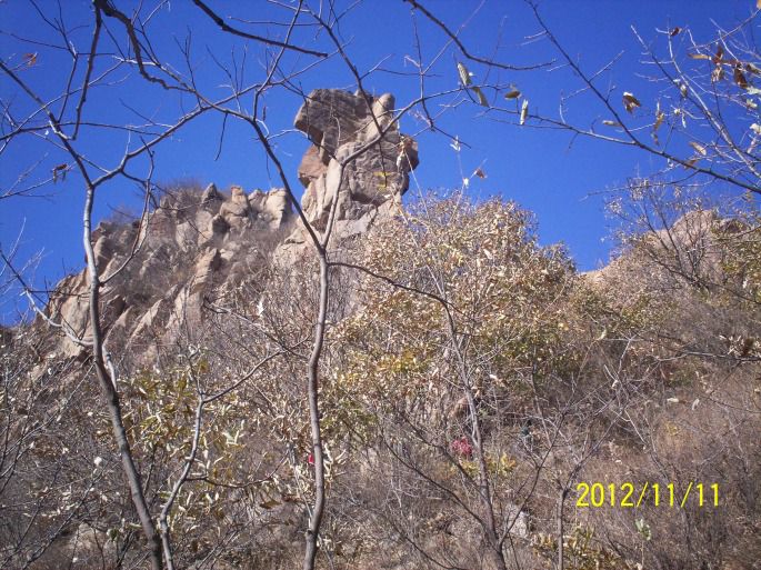 那是一个初冬的日子,温度刚刚下降,料峭的寒风挡不住我们对凌霄山的向往。“凌霄山,我们来了”,在群主的招呼声中,我们一行26人从有300多年历史被称作“北方最大古民居聚集村”的内丘县黄岔村下车,从凌霄山背面上山了。穿行于冬日的荒芜中,没有了绿叶红花,没有了水流潺潺,一路伴随的只有冬的空旷、风的寒冷,再有的就剩下“这就是凌霄山?”这一丝疑惑了。直到折过山来,我才明白凌霄山的正面才是她的精气神所在。