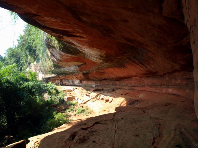 毗临四洞沟的杨家岩(红石野谷)景区是“赤水丹霞”世界自然遗产的核心景区之一,处于大同古镇、四洞沟景区,宝源梯田风光的中心地带,离市区约16公里该景区主要由“丹霞壁画石刻长廊”游览区和“观音沟原始生态瀑布王国区”两大部分组成。