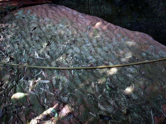 岩壁下有一条石龙卧在那里,龙头、龙身、龙尾都栩栩如生,还有丹霞金蛙石,金龟石也十分形象。我国首席丹霞地貌专家黄进教授实地考察后,评价为:“天然石刻”、“其妙无双”、“举世罕见”。