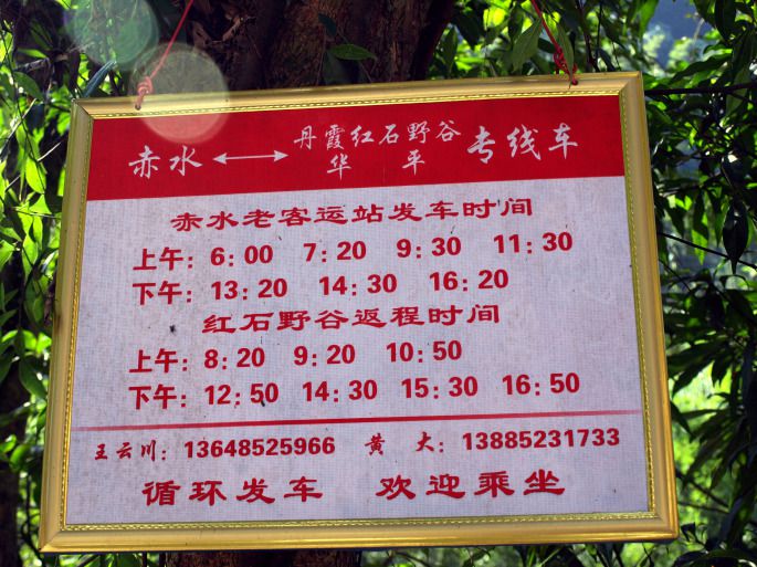 - 贴出杨家岩的班车时刻表,及车主电话,供参考。建议提前提些时间到停车场候车,最好不要计划乘末班车。乘客少,尤其碰到沿线某地有赶场(赶集)的话,车次就不正常了。我们就遇到大同镇赶场,那边客流量大,班车就不再来景区载客,让我们等了很久。不过,也不必担心,杨家岩景区的工作人员很热心,找他们帮助联系班车,当然是在末班时间之前,电话班车司机来载客;