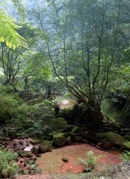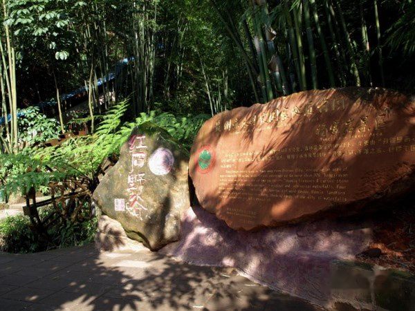 与“丹霞壁画石刻长廊”游览区不同,这个景区的侧重不是观赏,更多的是亲水与野趣。这里森林覆盖率达90%以上,生长着许多珍稀动植物。天气热时,游人来这里溯溪、摸鱼、逮野鸡(饲养的)、摘果、纳凉、品茶,休闲放松,与大自然亲近,是一个集休闲、科普、观光、渡假为一体的理想胜地。