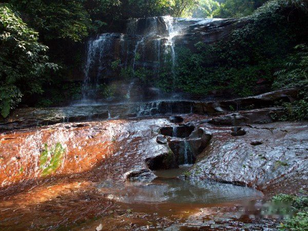 在近1公里的上山途中,会相继遇到十多个瀑布。其实,就是山上一条溪流顺坡而下,遇到不同的地况,就形成造型各异的瀑布和跌水。
