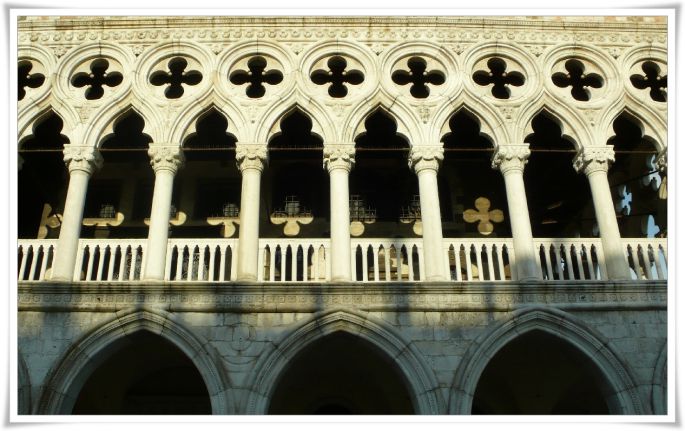 沿着狭长的小水道转街穿巷子,低着头走过一个建筑的门廊,已然来到总督宫。圣马可广场俨然威尼斯的一个大客厅,大概全世界来威尼斯的人都会跑到这里来朝一次圣,而圣·马可的周边简直就是一个旅游者的游乐园、纪念品的集散地、鸽子的放养场。