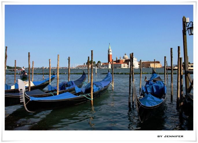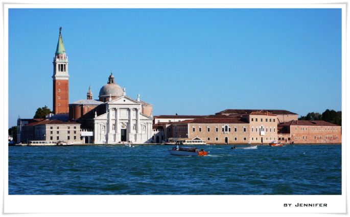 搭上水上巴士,沿着盘旋的S型运河蜿蜒而下。挤在船舱里,看着那水城,像朵睡莲浮在水中,忽然明白了:在这水声舟影、波光潋滟的华丽城市面前,鲜有人会不为所动,难怪百多年来,那么多的文人骚客为之神魂颠倒,这位亚得里亚海上的老婊子,啊,不,老皇后,年华是随风而逝了,却仍是倾国倾城的美貌。