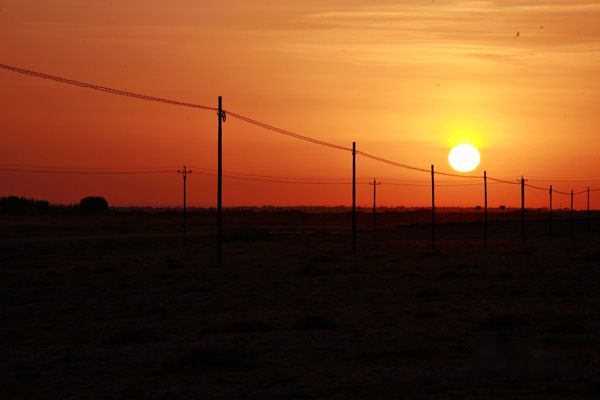 今天的行程是五彩城,据说到了那里你只要不说“哇”一下就是你的本事,我也是非常兴奋。早上七点半就要出发,这时天还没亮。在宾馆旁边的小店买了点吃的,解决一下温饱一就行了。汽车跨过布尔津河,一路行驶在戈壁滩上。不一会儿,远方的地平线开始泛红,太阳马上就要出来了。和领队、司机沟通了一下,最多只能停车二十分钟,让我决定在哪停就停。当停车的那一刻,我以百米冲剌的速度第一个冲下车,跑得远远的,以避开人群,以拍到一张满意的照片。拍了没几张,已有同伴叫我我帮他们拍照,只能为人民服务。整个停车时间感觉也不到二十分钟,那边已叫“开车啦”。没办法,只能草草收工。