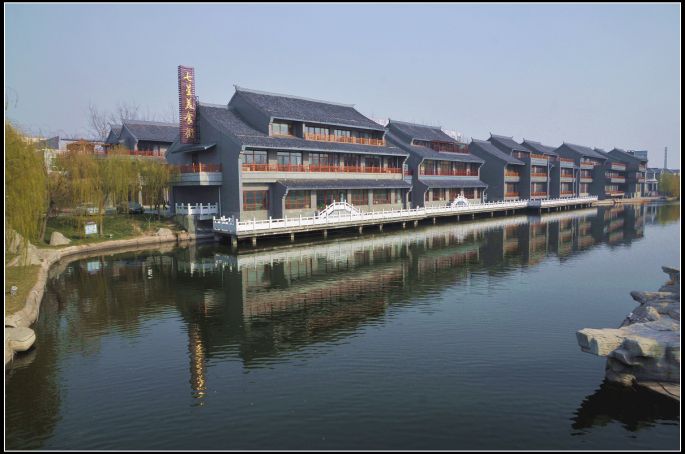 德州董子文化街主要体现在文化上。它是利用德州市一条内河两岸,以徽派特有的黛瓦垩墙建筑及董仲舒读书台景观为主题抒发点的新建景观。商业建筑正在招商阶段,没有一家开门营业。