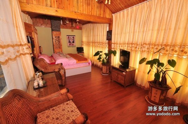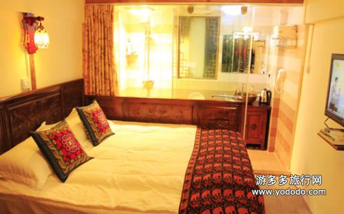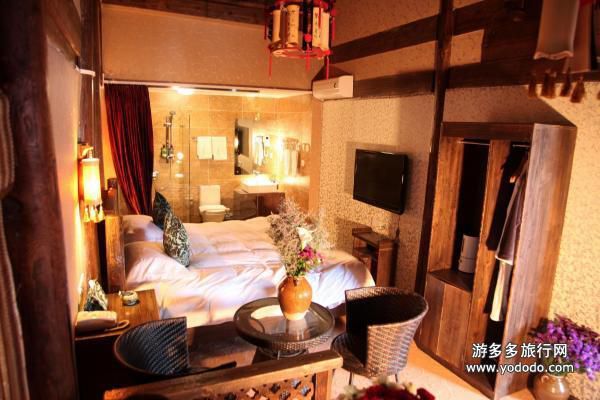 【蜜月套房568元】四百平米的纳西庭院落落大方,狮头石缸盘踞中心,奇花异草错落有致地沐浴在风和日丽下,意兴盎然。房间内木制大床古朴大方,是由栈主亲自设计经由木匠师傅利用传统的手艺打制,让旅途疲惫的客人安然入眠。http://www.yododo.cn/hotel/013AC06B8A7F27E3FF8080813ABD44D9