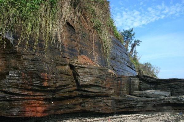 五彩滩又名芝麻滩,沙滩上有很多像芝麻一样的黑色小沙砾,五彩滩的美丽体现在退朝之后,黑色的小沙砾,大片的火山熔岩,映衬蓝天颜色的坑洼积水,还有轻轻拍打海滩的白色浪花,看到此番景象,不得不感叹大自然的妙笔生花。
