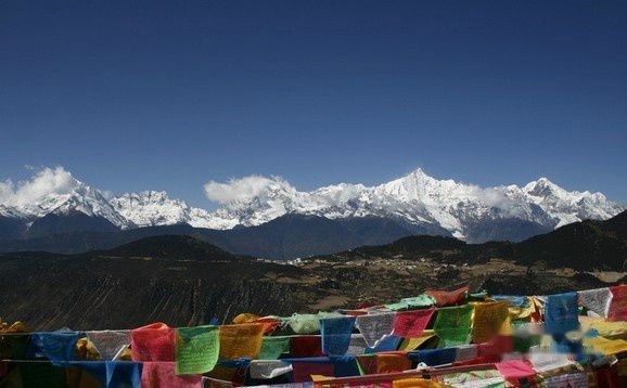 梅里雪山位于德钦县东北方10公里处,这里平均海拔在6000米以上的山峰就有13座,最高的是卡瓦格博峰,海拔6740米,为云南省的第一高峰。卡瓦格博峰藏语为"雪山之神",是藏传佛教的朝觐圣地,传说是宁玛派分支伽居巴的保护神,位居藏区的八大神山之首。所以每年的秋末冬初,西藏、青海、四川、甘萧的大批香客不惜千里迢迢赶来朝拜,匍匐登山的场面令人叹为观止。 此外卡瓦格博峰是迄今无人能登顶的"处女峰",这里冰川连绵,冻土成片,是登山运动员极想攀登的地方。梅里雪山在藏民心中是一座圣山,早在30年代美国学者就称赞卡瓦格博峰是“世界最美之山”。以日照金山闻名,但是否能看到日照金山那就全凭运气了,有的人去十次也看不到,而很多人去一次就可看到。