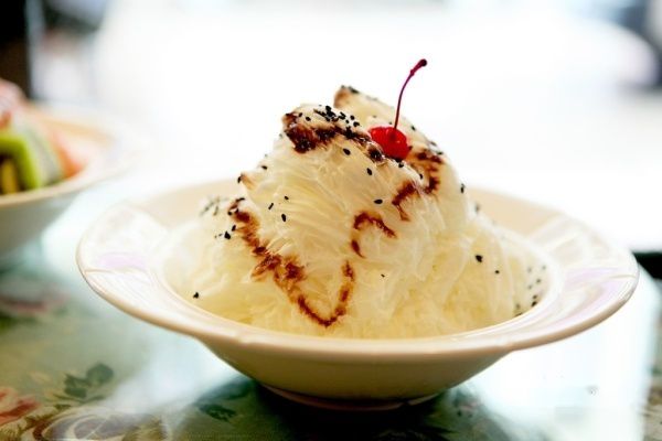 招牌雪花冰果然名不虚传,抹茶、百香果、芒果、花生等多种口味,各有各的特色,零下35度的专利微调设备,刨出雪花片片,入口即化,感觉奇佳。据老板介绍,日月潭雪花的冰砖均采用新鲜水果制成,不加糖浆和炼乳,已十分可口。