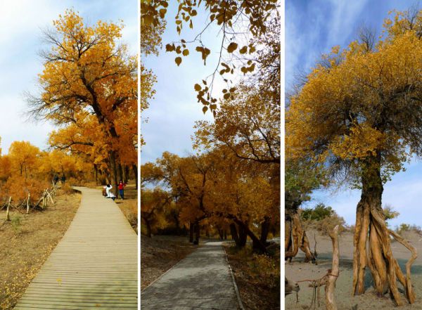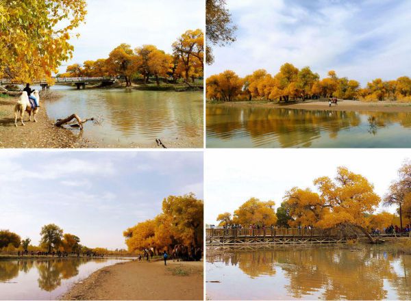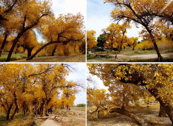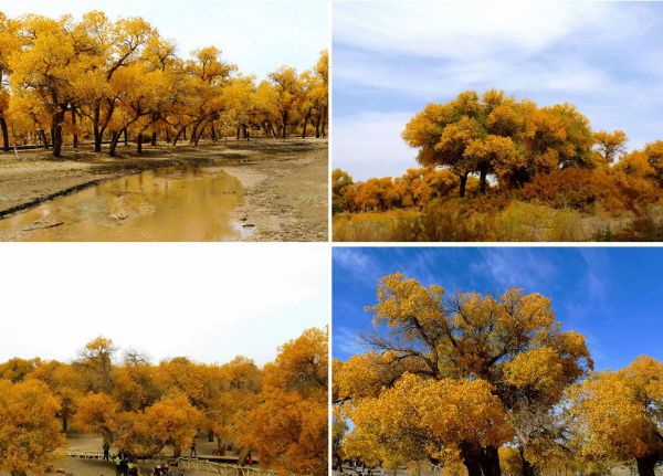 胡杨,秋天最美的树,蒙古语有个美丽的名字:“陶来”。是一亿三千万年前遗留下十分珍贵的最古老树种,只生长在沙漠,可以和有“植物活化石”之称的银杏树相媲美。胡杨耐旱百涝,生命顽强,是自然界稀有树种之一。额济纳是世界上仅存的三大胡杨林之一,且保护最为完整。现有数百年的胡杨,领进大漠瀚海风骚,历尽历史沧桑,仍枝繁叶茂,乃大自然独钟的奇迹。