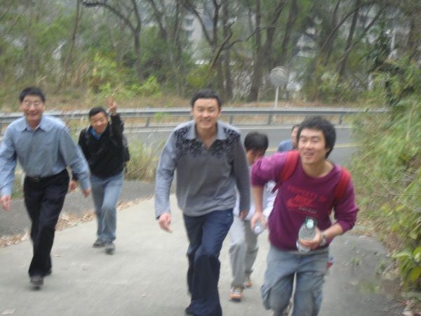 汽车将我们送到梧桐山脚下。大家信心满满的走下汽车。隋总显然很兴奋的组织大家前进,结果上来就带错路了哈哈。好在只是一个插曲,很快大家就找到上山的路。