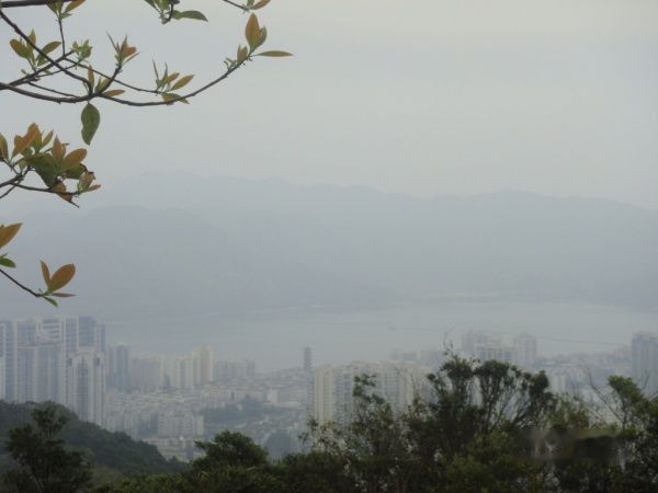 经过一段碎石小路和板油路的组合后。我们就可以远眺鹏城湾的海景了……风景秀美。不过我们也将迎来真正的挑战。登顶梧桐山由此正式开始。