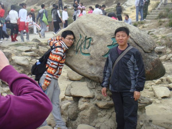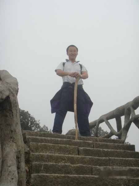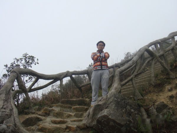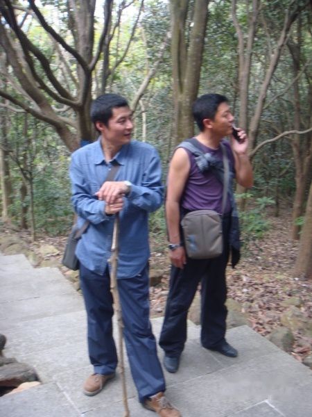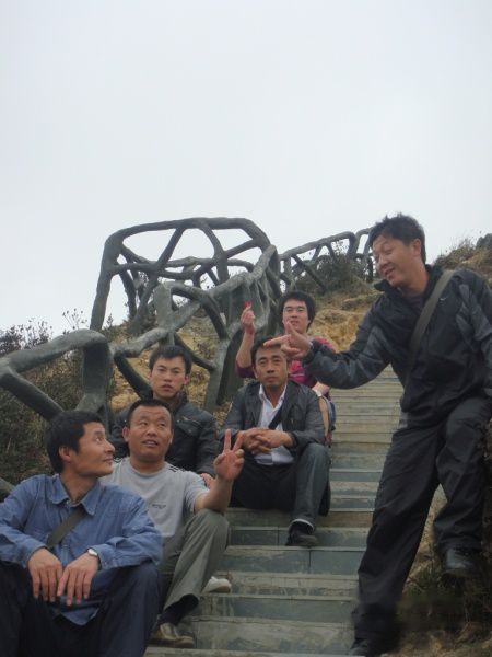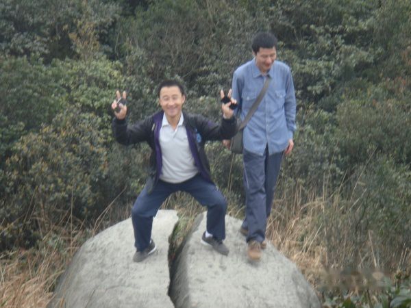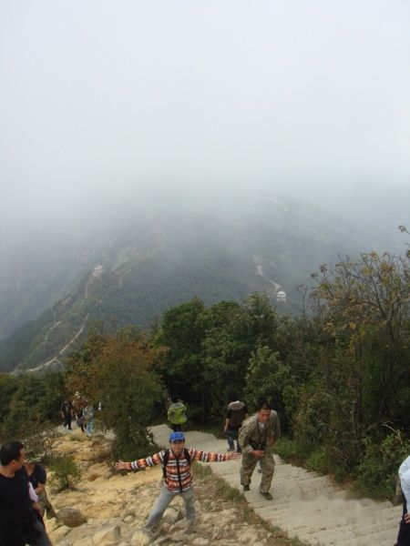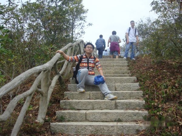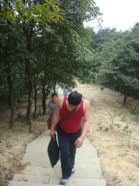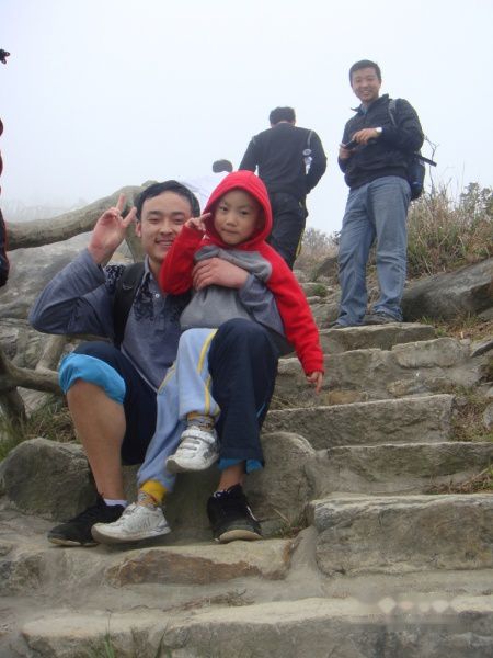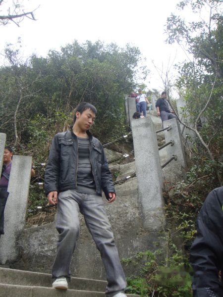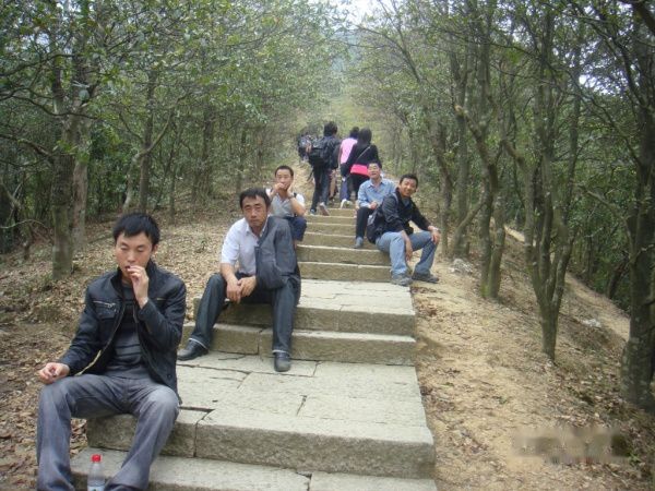 明哥,明显是累了!登到此时,大家都觉得这个石头路要比上台阶轻松多了。很多人都选择这个石头路往上爬。