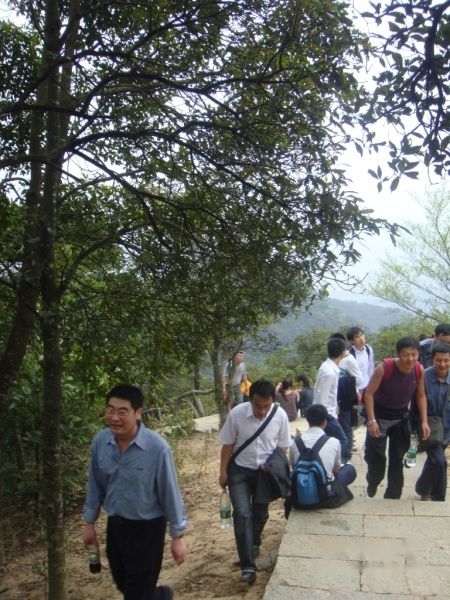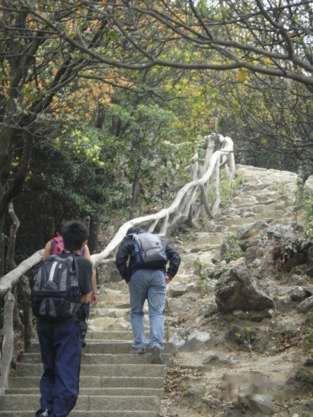 欣赏完风景后,大家向山顶进发。前方的路并不平坦。大家再加把劲,就要到山顶了。坚持就是胜利!