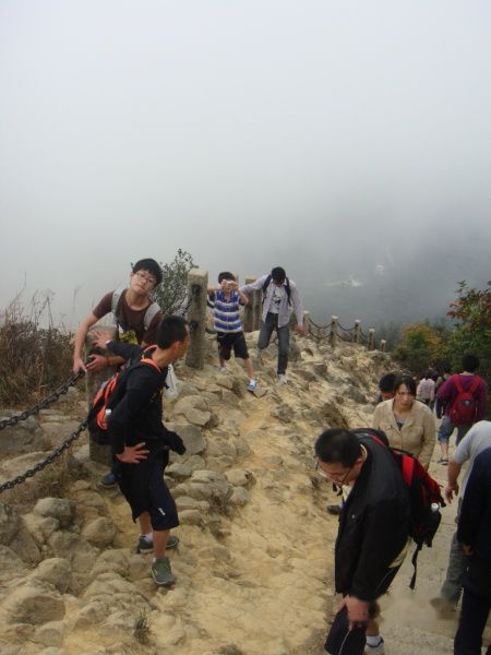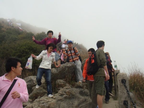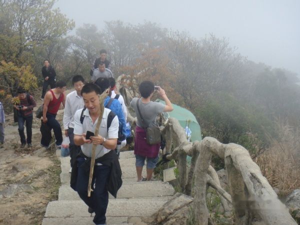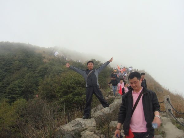 果然是“云锁梧桐”大家就在云雾中穿梭。登山休息之余不忘拿出相机欣赏下美景!