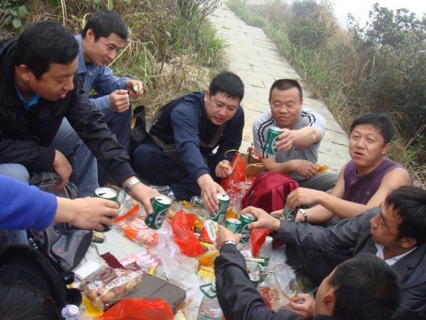 经过一通欢声笑语之后,大家开始享用我们的午餐了。这个可是我们辛辛苦苦从下面背上来的。此时苏少俩口子也赶上来了。大家开始野外聚餐!