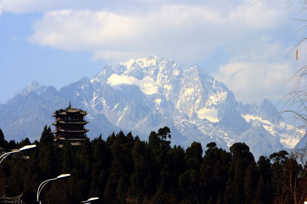 这是在另一个地带拍的”万古楼与玉龙雪山“
