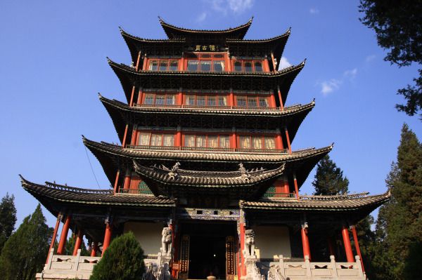 【狮子山公园】 位于丽江市中心,在大研镇四方街的西侧,很好找,因为这座山是孤峰自傲,不高,总共18公顷。公园里的树木很茂盛,有一座红色的塔楼,是现代建筑,名---万古楼。