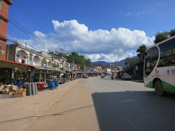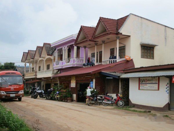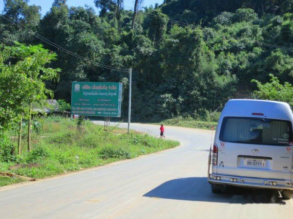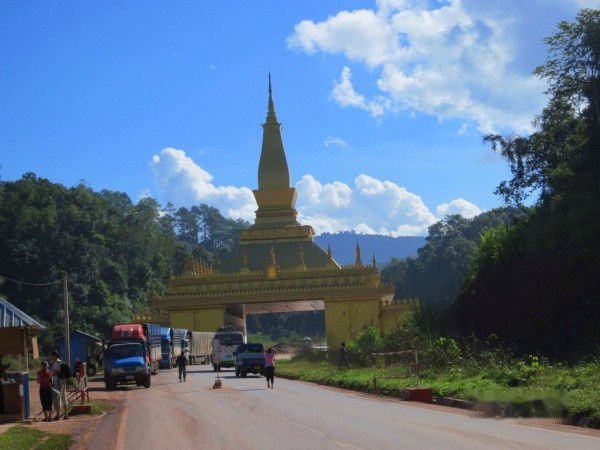 经过老挝的国门后,展现在我们面前的就是异国风貌了。老挝的生态环境保护得很好,沿途所见都是绿油油的树木。老挝是贫富差距比较大的国家,沿途的村寨比较落后,但是小镇和城市建设又比较繁华。