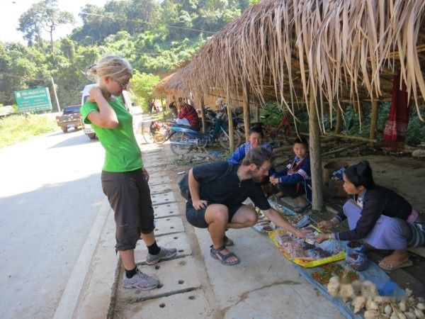 我们路径老挝的南部城市乌鲁勐赛县城,在那里我们休息,向老挝边民购买小吃。语言不通,我们就**势比划,让他们明白我们要买多少食物,然后就将手中的钱交给她们,他们在留下所需要的钱后,会将多余的钱退还给你,这就是淳朴的老挝人民。