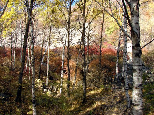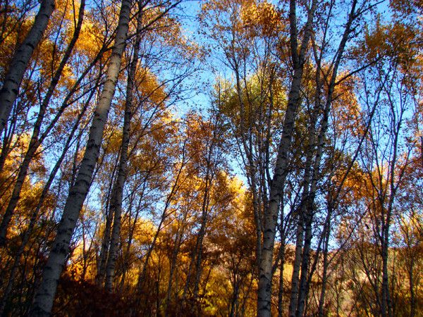 国庆大假期的最后两天,终于下决心摆脱人多的烦恼,去了离京城一百六十公里的怀柔喇叭沟门的满族乡孙栅子观赏秋天的白桦林,那里的原始次生态景区草木葱茏,蓝天白云,空气清新,有着首都后花园之称,名付其实的天然氧吧,特别是凤凰台景区山上遍布栽种着白桦林,在蓝天白云的衬托下,成金黄一片,似是一幅幅绚丽秋天的天然画卷,美仑美奂、、、
