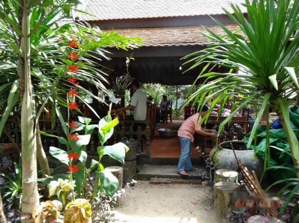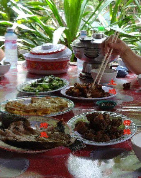 这土鸡,地地道道是村民们在林中散养的。柬埔寨的鸡个头比我们的要小(可能是南方温度的缘故)。虽然专家们说不管是养鸡场的鸡(鸡蛋)还是散养的鸡(鸡蛋),其营养基本是相同的。而且由于鸡场讲究的饲料,可能鸡场的鸡(鸡蛋)的营养会更好一些。但,从口味上来看,这土鸡可是真香啊 ~ 吃完一只,地导又亲切地给我们又要了一只 ~ 哈 ~ 过瘾了!