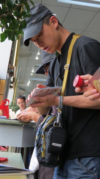 这里可熱鬧得很,小小的两张桌子,從早到晚擠満了人,一个圖章蓋一下,马上又給人借走了。