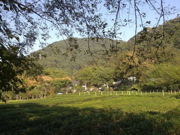 这次杭州之行,我们不论到哪里都坚持坐公交车,一来经济,二来可以慢慢欣赏杭州市容。在通向龙井村的路上,随着公交车的行进,我们悠闲的浏览着市容,很快地,一片片郁郁葱葱的,连绵的群山,闯入了我们的视野,带给我们视觉的惊喜,看看时间,估计是快到龙井村了,因为龙井村就是一处四面环山的村落。