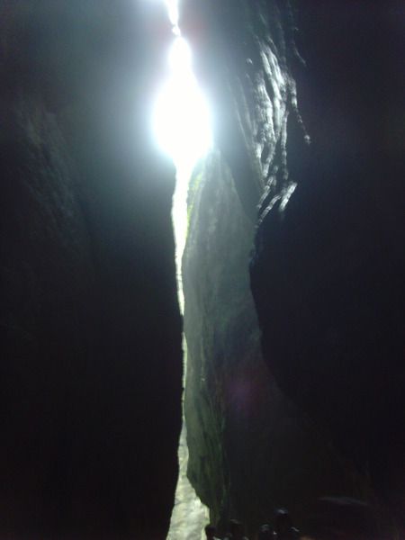 土匪洞原来也不是我们想象的那么宽大平坦。叫一线天的通道可见道路何其狭窄,湘西多雨山洞中潮湿度可见一斑。不过风景确实不错,青山绿水,只是不知道土匪们有没有心情来欣赏这风景了,要是青山都变成金山也许他们更喜欢吧。