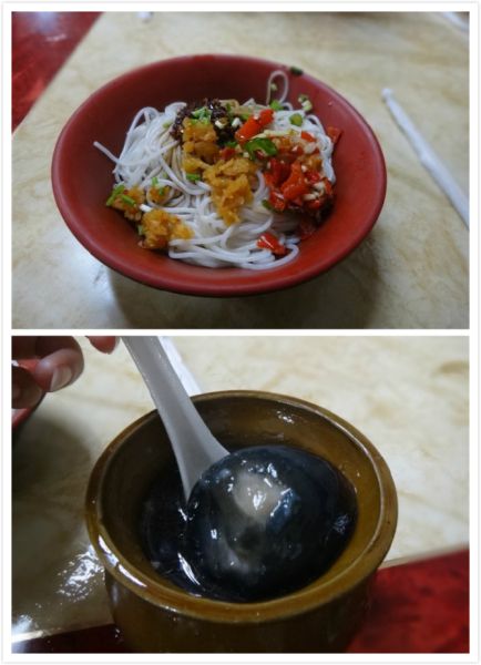 晚上我们在绳金塔附近的一家龙老五汤店喝了瓦罐汤,也尝了尝拌粉,貌似这些都是南昌人地道的早点来着,味道很不错,这家店也有些年头了。