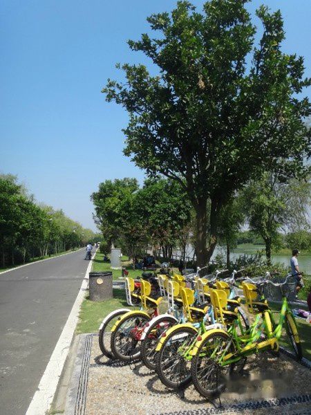 我们早上在南昌大学租的车,在这边租车还是挺方便的,押身份证就行,租金可以是4元/小时,也可以是20一天。我们骑车去了艾溪湖,南昌的湖还是很多的,不过这个艾溪湖应该是环境最好的,也是最适合单车的了。