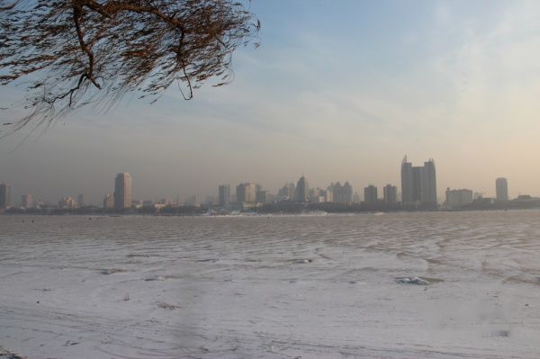 安顿下来,出门沿通江街来到松花江边。第一次在结冰的江面上行走,第一次感受零下20度的严寒,居然兴奋战胜了寒冷。顺着江边行至中央大街,五点不到,天已尽黑,街灯都已亮起。中央大街两旁都是些俄罗斯小商品店。来到中央大街37号的东方饺子王,居然是在地下室经营,不过看起来还是挺干净的,于是坐下来进餐。推荐肉皮冻,饺子感觉一般般。