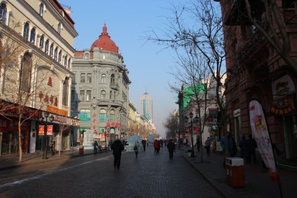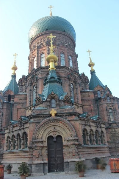 12月30日,早8时多起来,就在酒店对面的面馆吃了个早餐。面条5元每碗,加了一份血肠10元,牛肉10元。然后顺着上游街来到中央大街,如果沿着上游街继续前行,就到了兆麟公园,晚上可以看冰灯。在中央大街上,随意的游来荡去,到西十二道街时,沿路步行至石头道街,又折向兆麟街,来到哈新一百旁的圣-索菲亚大教堂。门票20元。